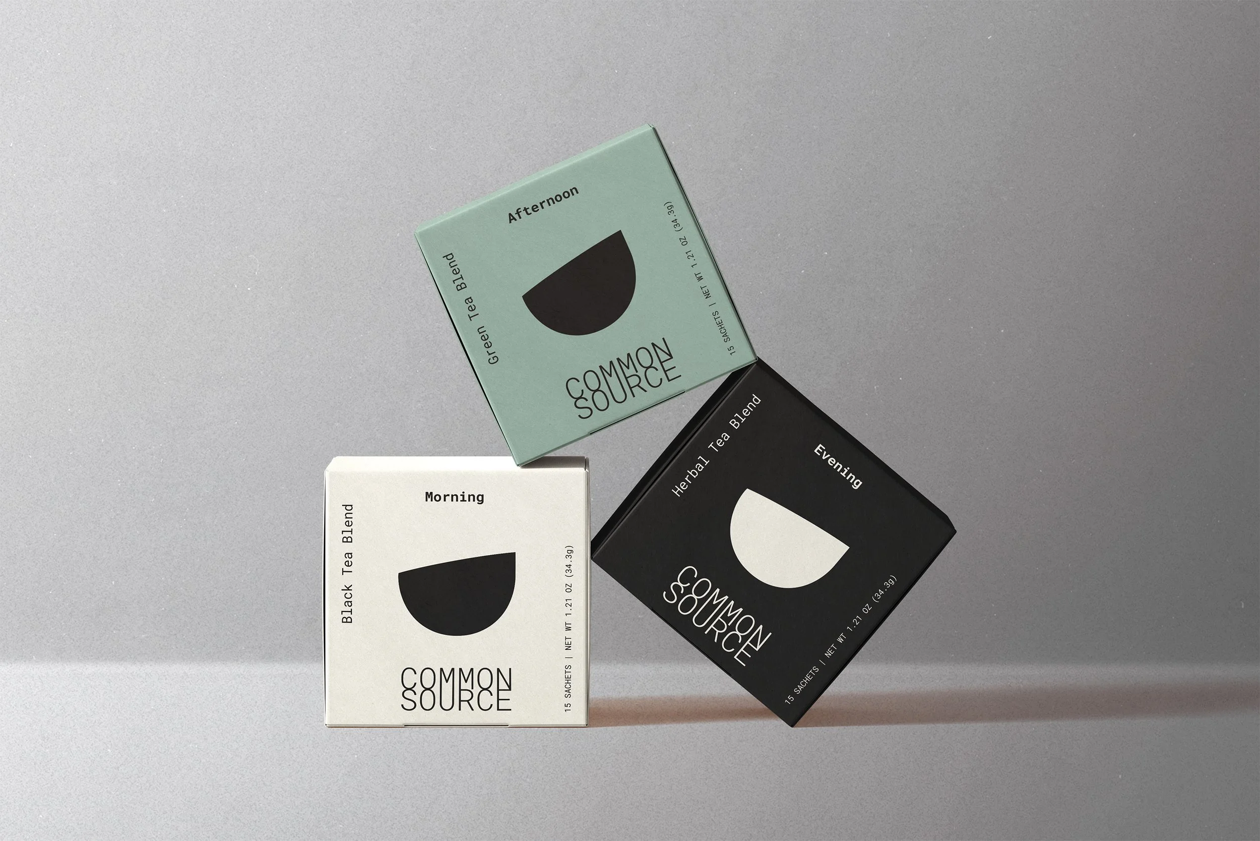 Common Source is a concept for a practical and minimalist tea that offers three blends of varying caffeine levels for different times of the day. Its packaging also seeks to be minimal and is centered on variants of a cup shape drawn from the logo’s “U”. The use of soft white, green, and black and a monospaced typeface adds to the sense of orderly simplicity.